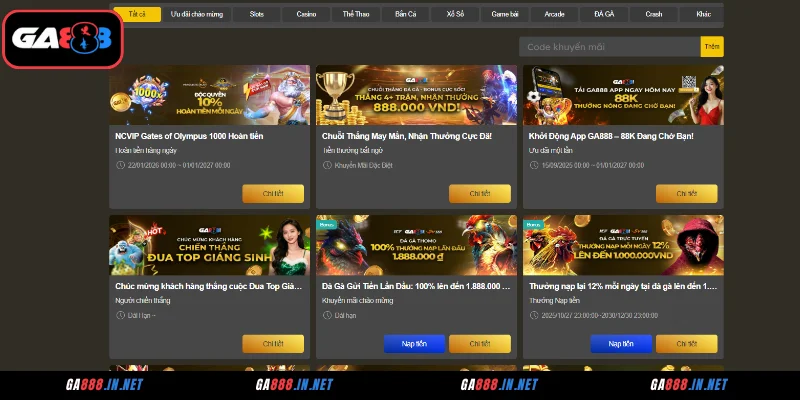 Cập nhật các khuyến mãi GA888 đang áp dụng