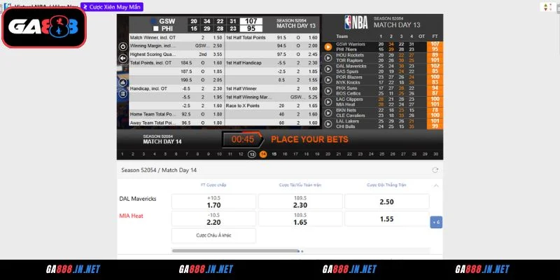 Hệ thống kèo, tỷ lệ do Saba Thể thao GA888 cung cấp đảm bảo minh bạch, chính xác. Bên cạnh đó, tỷ số, kèo cược cùng thống kê trận đấu đều được đồng bộ trực tiếp, cập nhật theo thời gian thực, giúp người chơi nắm bắt thông tin nhanh chóng và ra quyết định chính xác.